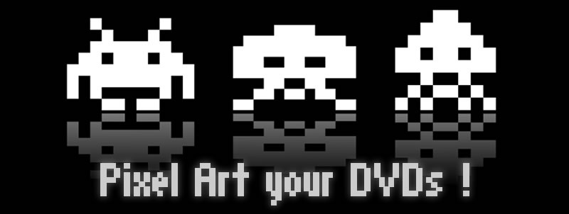 Create your own pixel art with DVD jackets ! You just need few DVD boxes to get a piece of art in your living room ! Start now: choose how many DVD you'd like to use, draw whatever you want and get pieces in a PDF ! Print it, wrap your DVDs, here you go !
